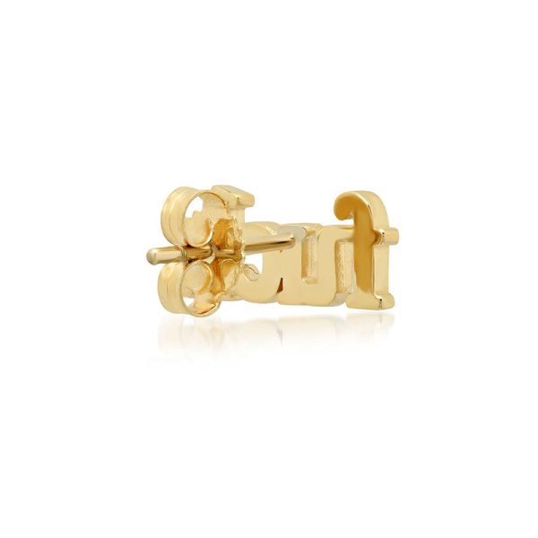 Our single word stud earrings are handcrafted in 18-karat yellow gold and set with shimmering pavé diamonds. Make a statement and pair it with the diamond “you” stud.