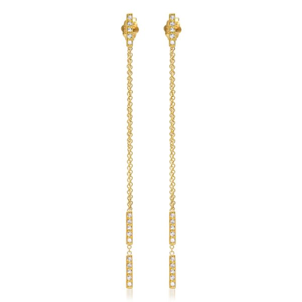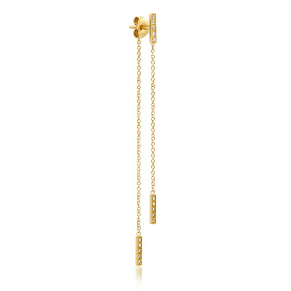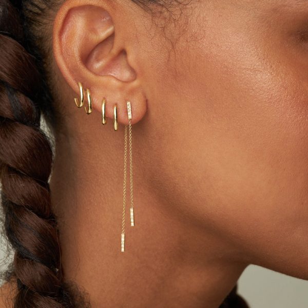Delicate and effortlessly chic, our Diamond Threaded Bar Studs are handcrafted in 18-karat yellow gold set with shimmering pave diamonds and hang from both the front and the back of the lobe. Wear yours to complement any look, day or night.