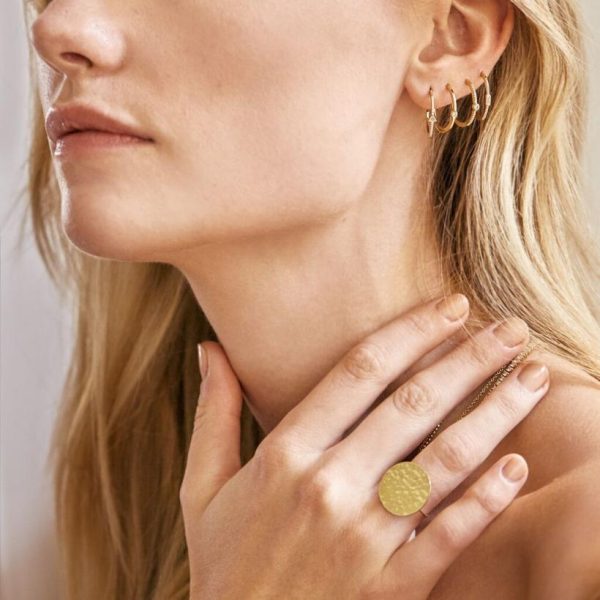 A brand new addition to our collection, this chic, standout ring is crafted from hammered, subtly textured 18-karat gold and set on a delicate band. Timeless, sophisticated and ultra-lightweight, wear yours to transition from day to night with ease.