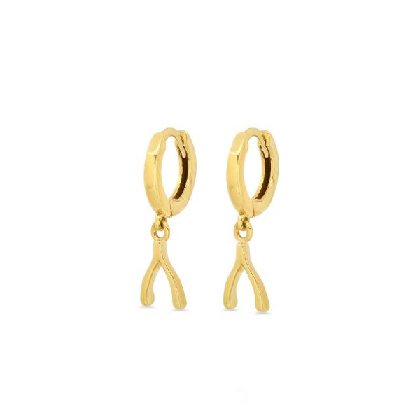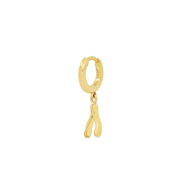 Handcrafted in 18-karat yellow gold, this sweet pair of wishbone drop huggies makes the perfect gift for yourself or someone special. Recommended for second or third piercing – take your style cue from Jen and wear both earrings in the same ear.