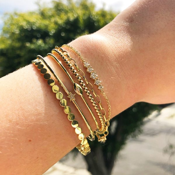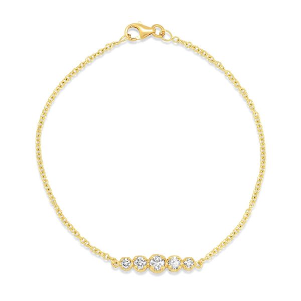 Handcrafted in 18-karat gold, this bracelet features five illusion set diamonds of varying size fixed to a 6.5 inch chain. A delicate bracelet with timeless appeal, this classic piece makes the perfect gift for yourself or someone you love, because diamonds are always a good idea!