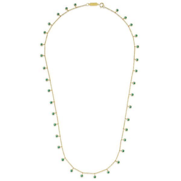 Delicate and understatedly chic, our Mini EmeraldBezel Dangle by-the-Inch necklace is handcrafted in 18-karat yellow gold and fixed to a 16 inch link chain. A layer and leave on necklace we love, wear yours as a signature piece to add a subtle pop of color to your everyday.