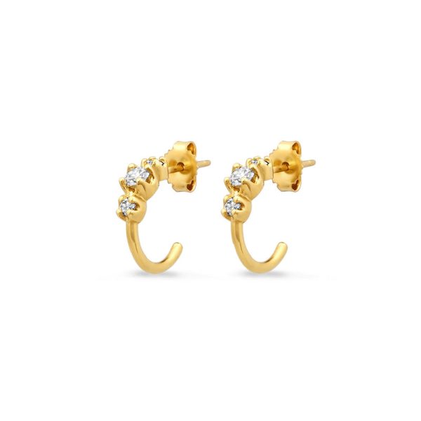The mini version of our best-selling Graduated Hoops, these Mini Diamond Hoops are handcrafted in 18-karat yellow gold and set with 0.36 carats of brilliant cut, white diamonds of varying size in a four prong setting, starting from the top and ending about half way down the hoop. Wear yours as an everyday signature piece, because diamonds are always a good idea!