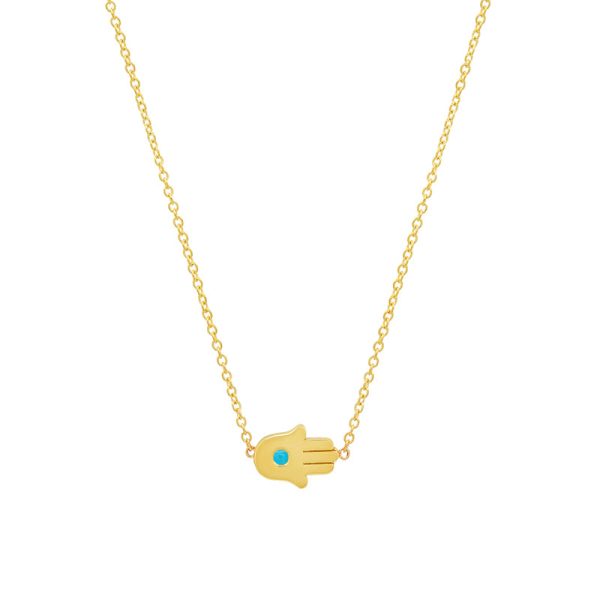 Our Mini Hamsa Necklace with Turquoise Center offers a colorful new form of protection with this twist on our classic Mini Hamsa design. Set in 18 karat gold, this dainty symbol of protection is the perfect gift for the one you love and cherish the most.