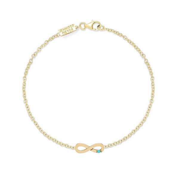 Our Mini Gold Infinity Bracelet with Turquoise Accent was designed to symbolize everlasting love and infinite possibilities. Adorned with a colorful Turquoise accent on this polished 18 karat gold pendant, this piece is a sweet pop of color on its own or layered with other bracelets from our collection. Fixed to a 6.5″ link chain, you are sure to make a statement that lasts a lifetime with this sentimental heirloom.