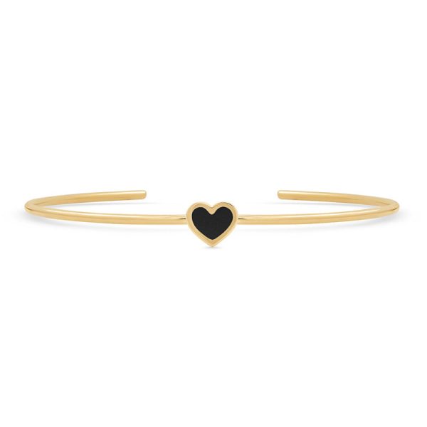 An extra small black onyx inlay heart is set on a polished 18-karat yellow gold cuff. An everyday accessory, we love the bracelet worn on its own or stacked with others from the collection. A symbol of love, it’s the perfect gift for someone special.