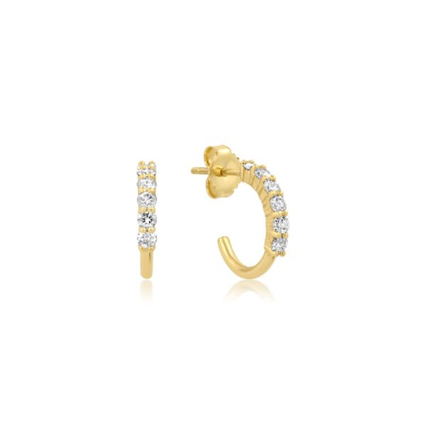 An update on a classic silhouette, these Mini 4-Prong Diamond Hoops are handcrafted in 18-karat yellow gold and set with .42 carats of brilliant cut, white diamonds of varying size in a four prong setting, starting from the top and ending about half way down the hoop. Wear yours as an everyday signature piece, because diamonds are always a good idea!