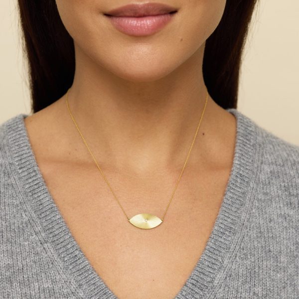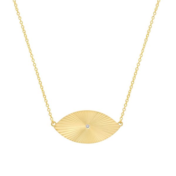 The 70’s Evil Eye Necklace reimagines our classic design with a retro twist inspired by the iconic 70s collection. Handcrafted in corrugated 18-karat yellow gold and set on a 16-inch chain, it features a stunning round-cut white diamond for added elegance. Beyond its stylish appeal, it symbolizes protection, making it a meaningful gift for yourself or a loved one. Whether worn alone or layered, the 70’s Evil Eye Necklace is a timeless piece that beautifully blends retro style with modern significance.