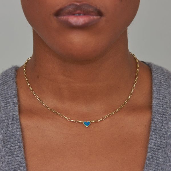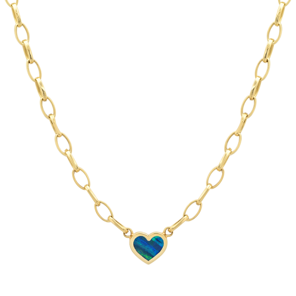 Our small Edith link necklace is updated with a single small opal inlay charm fixed to the center of the chain. Handcrafted in 18-karat yellow gold and measuring 15 inches in length, it makes the ideal layering piece to add to your everyday.