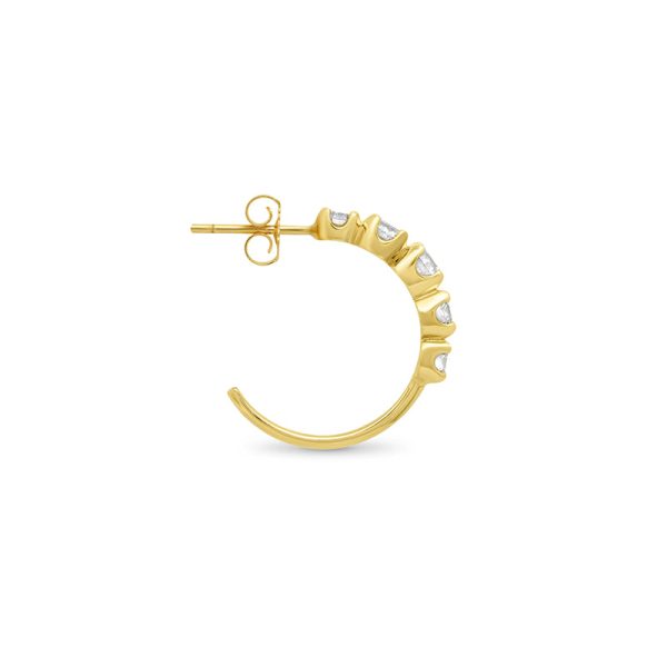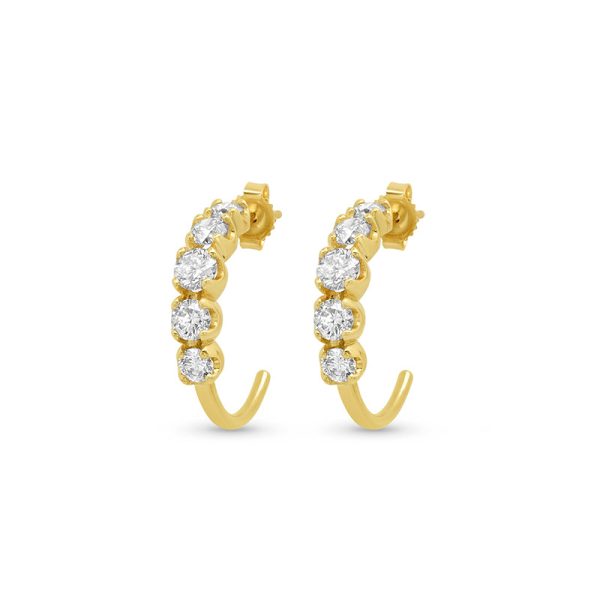 An update on a classic silhouette, these Small Graduated Diamond Hoops are handcrafted in 18-karat yellow gold and set with 1.75 carats of brilliant cut, white diamonds of varying size in a four prong setting, starting from the top and ending about half way down the hoop. Wear yours as an everyday signature piece, because diamonds are always a good idea!