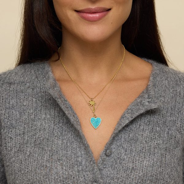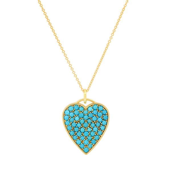 Handcrafted in 18-karat yellow gold, our large signature heart pendant is set with beautiful cabochon-cut turquoise and hangs from a delicate, 18 inch link chain. A symbol of love, layer the wear-forever piece to elevate your everyday, signature look.
